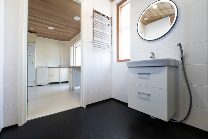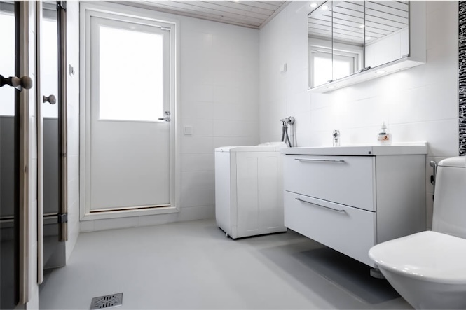 saatavilla Raahessa kylpyhuoneremontin yhteydessä: saumaton pesuhuonelattia